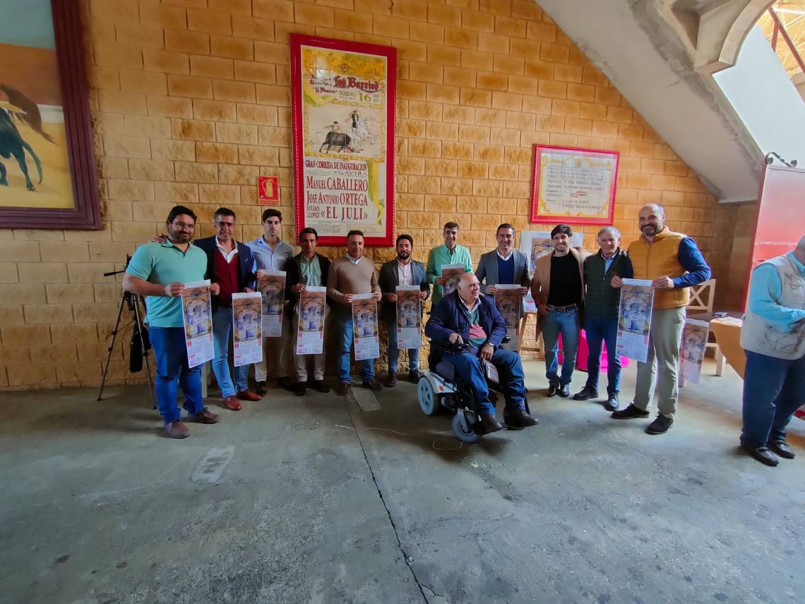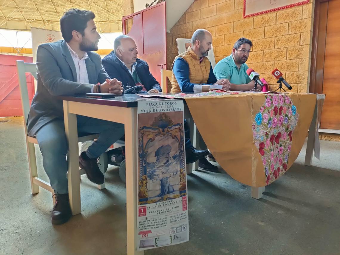 El alcalde de Los Barrios, Miguel Alconchel; el delegado de Turismo, Antonio Dávila; el presidente de la Asociación de Discapacitados ‘La Montera, Juan Antonio Muñoz; y el gerente de Ruedos del Sur, Jesús Rodríguez Santana, han presentado este mediodía en la puerta grande del coso barreño el cartel del I Encierro-Festival Benéfico Villa de Los Barrios, a favor de la asociación de discapacitados.