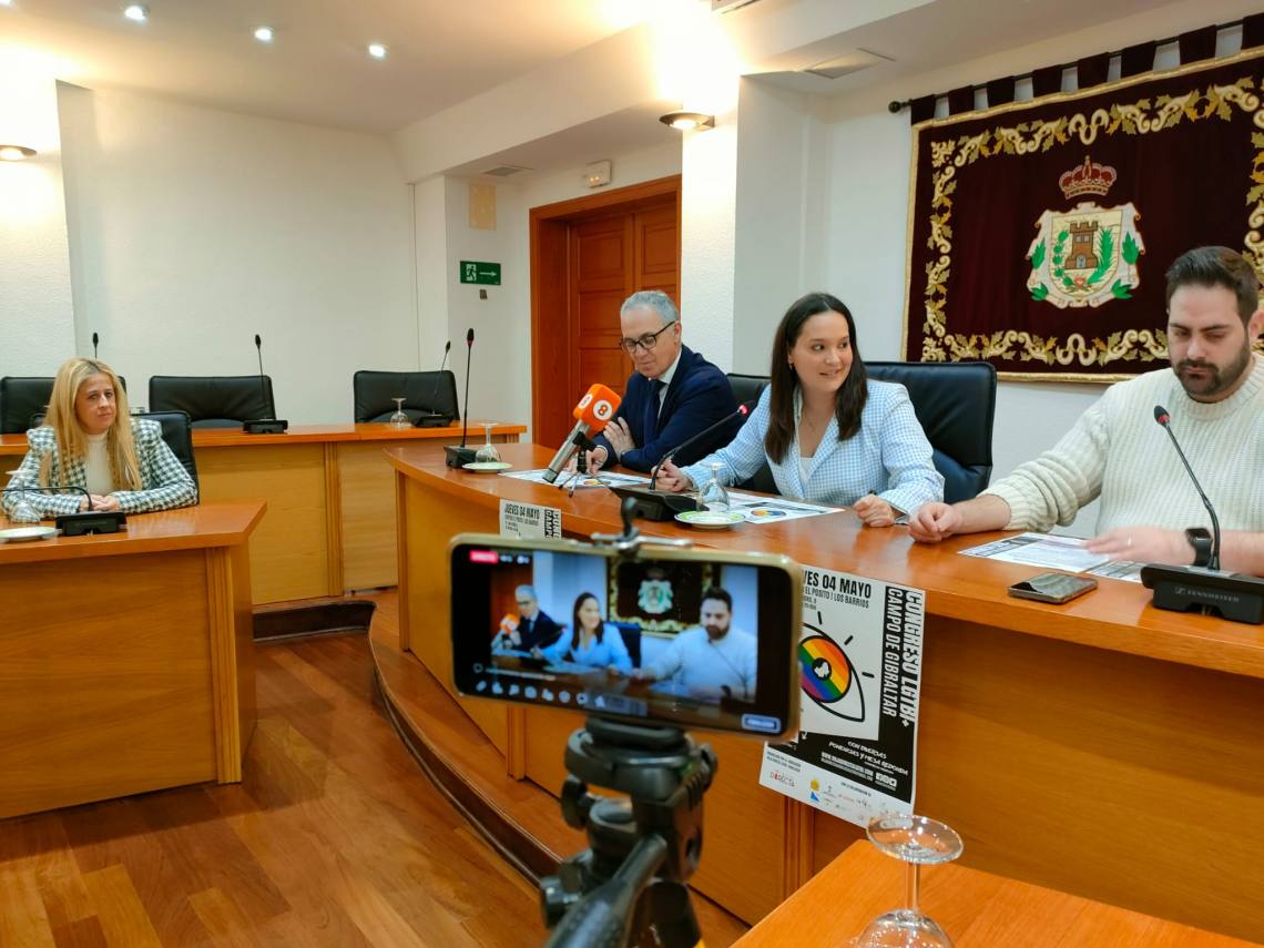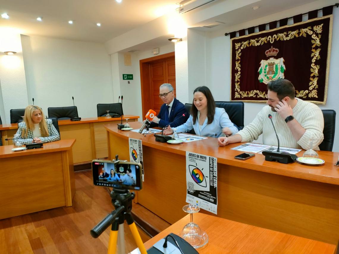 La delegada de Políticas de Igualdad, Sara Lobato; el presidente de la Mancomunidad de Municipios, Juan Lozano; y el presidente de la Asociación Roja Directa LGTBI+ Andalucía, Jesús Tomillero, han presentado esta mañana en rueda de prensa el II Congreso LGTBI+, que se celebrará en Los Barrios el 4 de mayo. Una presentación a la que ha asistido también la delegada de Economía y Hacienda, May Gallego.