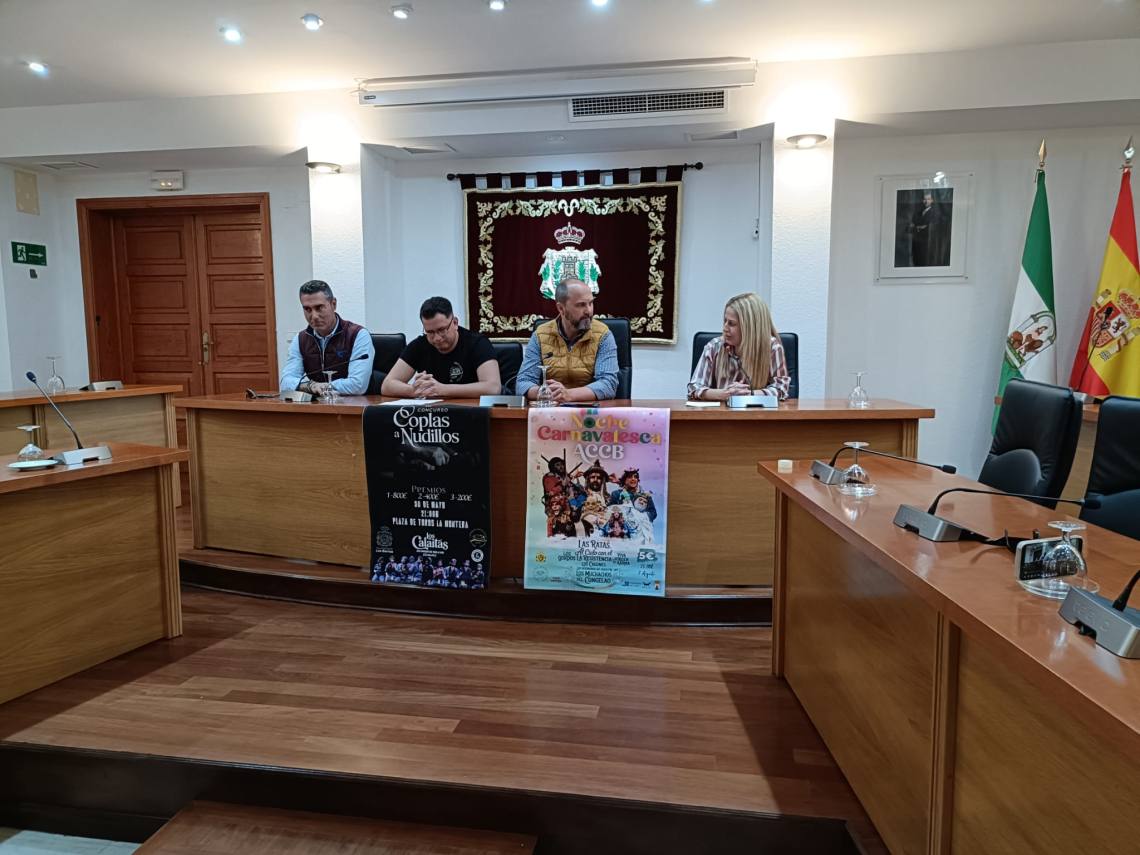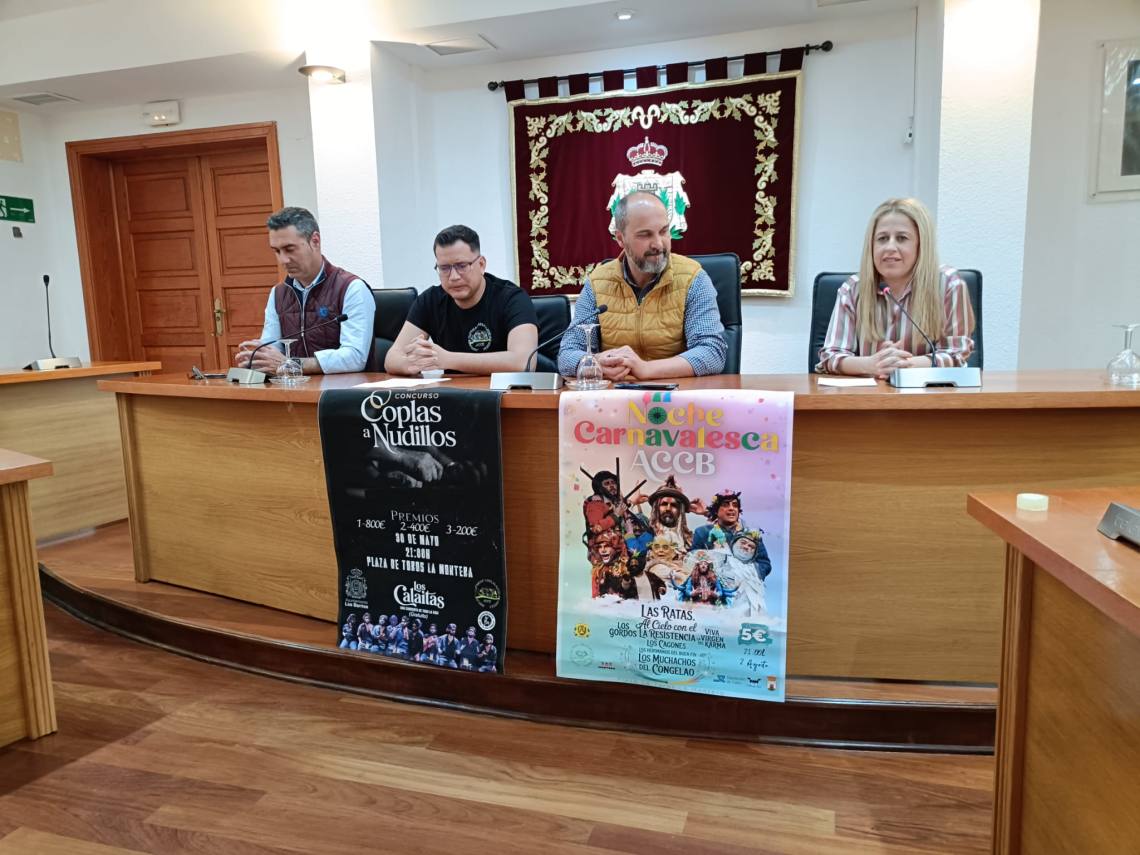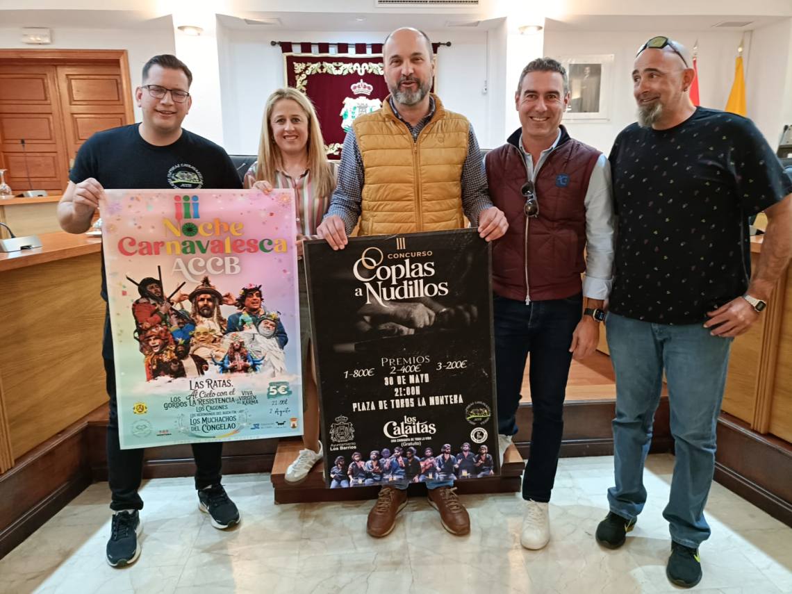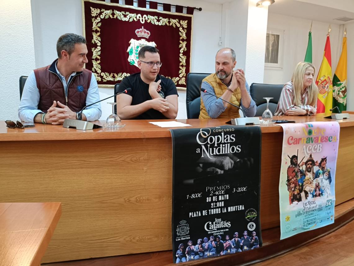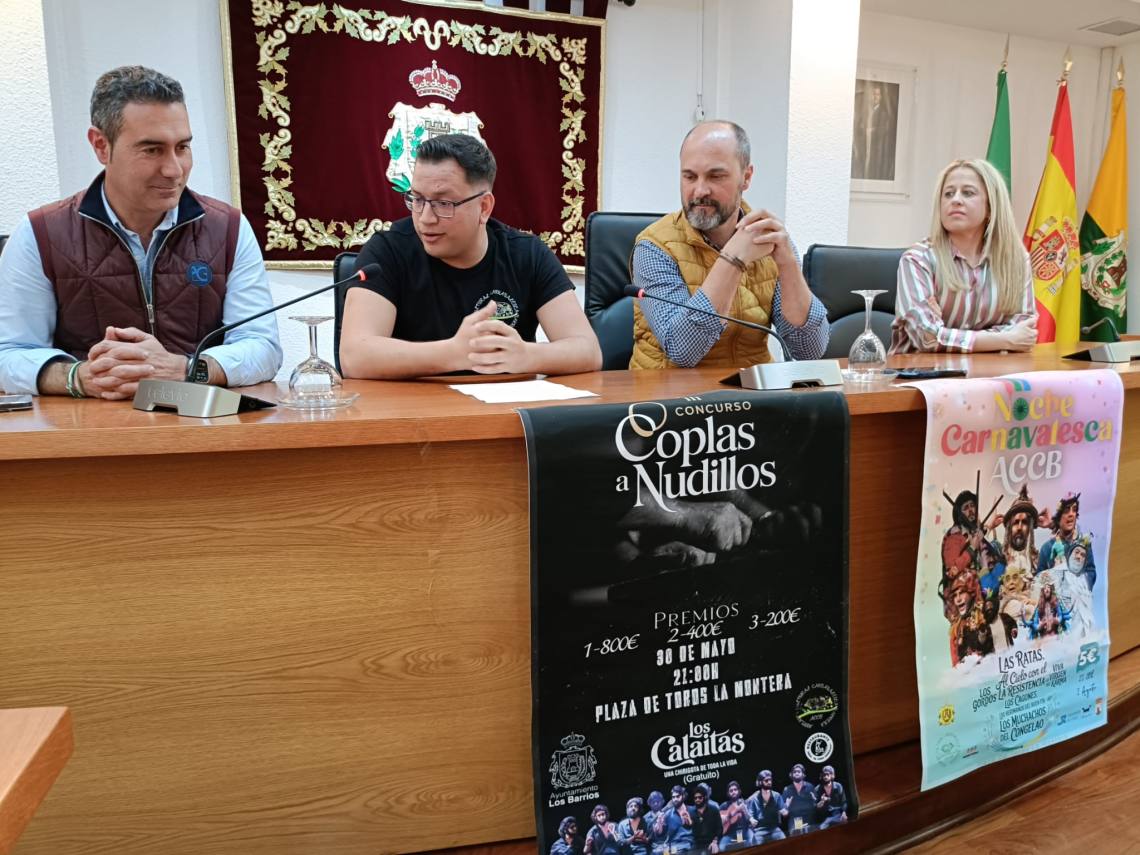 El alcalde de Los Barrios, Miguel Alconchel, la delegada de Ferias y Fiestas, May Gallego, y el vicepresidente de Cultura de la Mancomunidad, Pablo García, han presentado este mediodía en rueda de prensa todos los detalles de los dos eventos carnavaleros que se van a dar cita en las próximas semanas en el municipio.