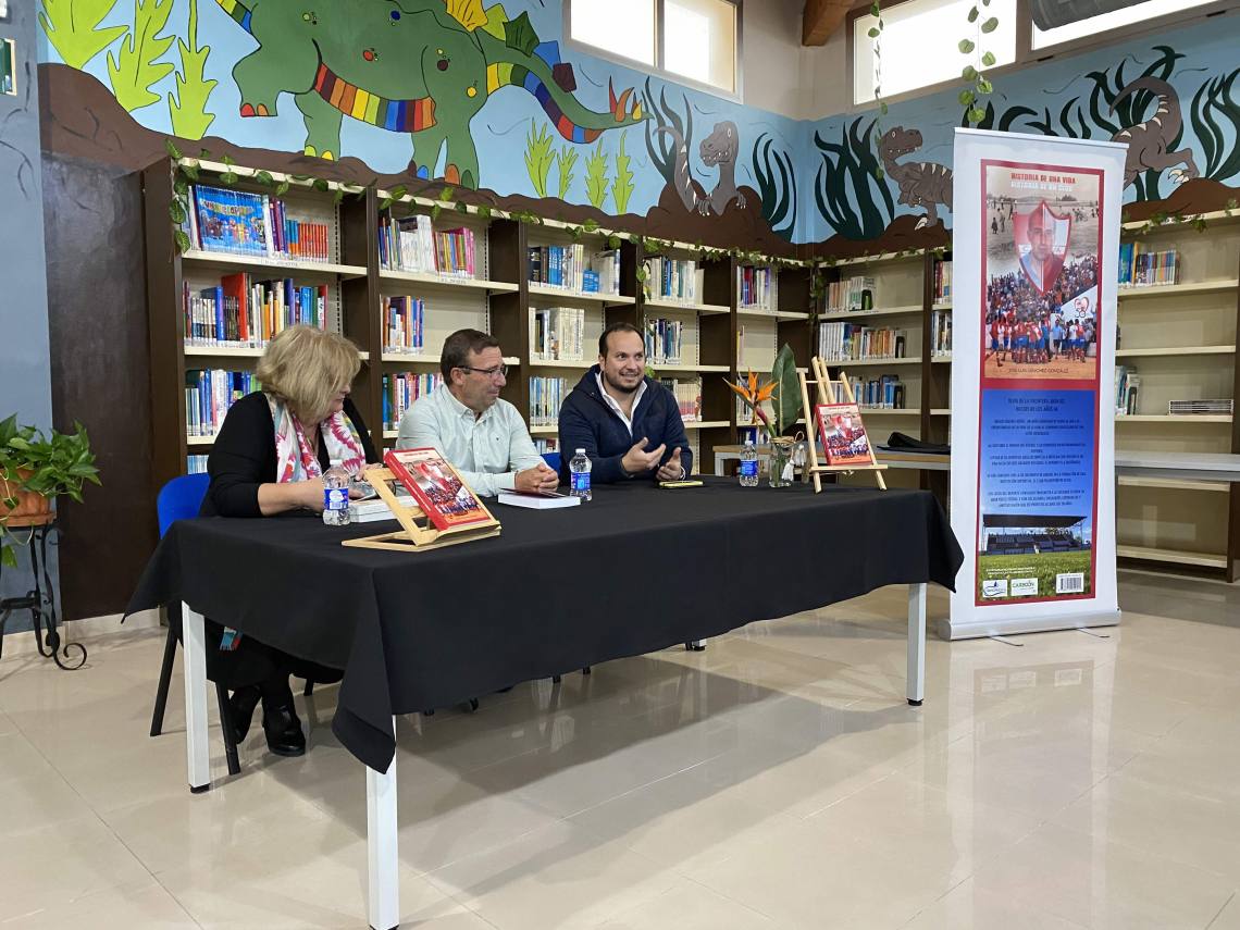 El X Ciclo ‘Escritores’, organizado por la delegación de Cultura, que dirige Daniel Pérez Cumbre, y la Asociación de Mujeres ‘Telethusa’, que preside María José Alconchel, ha traído hoy a la biblioteca pública municipal la presentación de “Historia de una vida, historia de un club”, de José Luis Sánchez González. Cita que ha contado con la presencia también del concejal delegado de Educación, Raúl Álvarez.