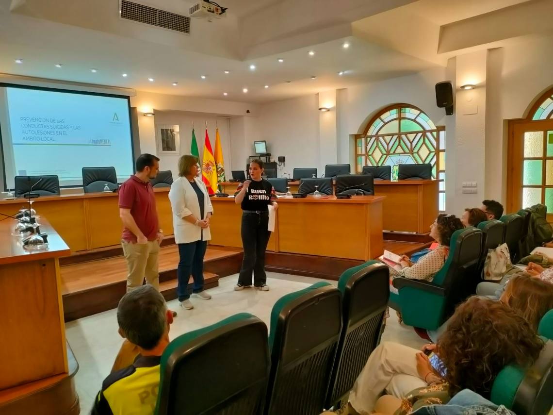 El salón de plenos del Ayuntamiento de Los Barrios ha acogido este viernes una jornada de formación en prevención del suicidio, dirigida a profesionales municipales que trabajan con la comunidad o poblaciones de riesgo.