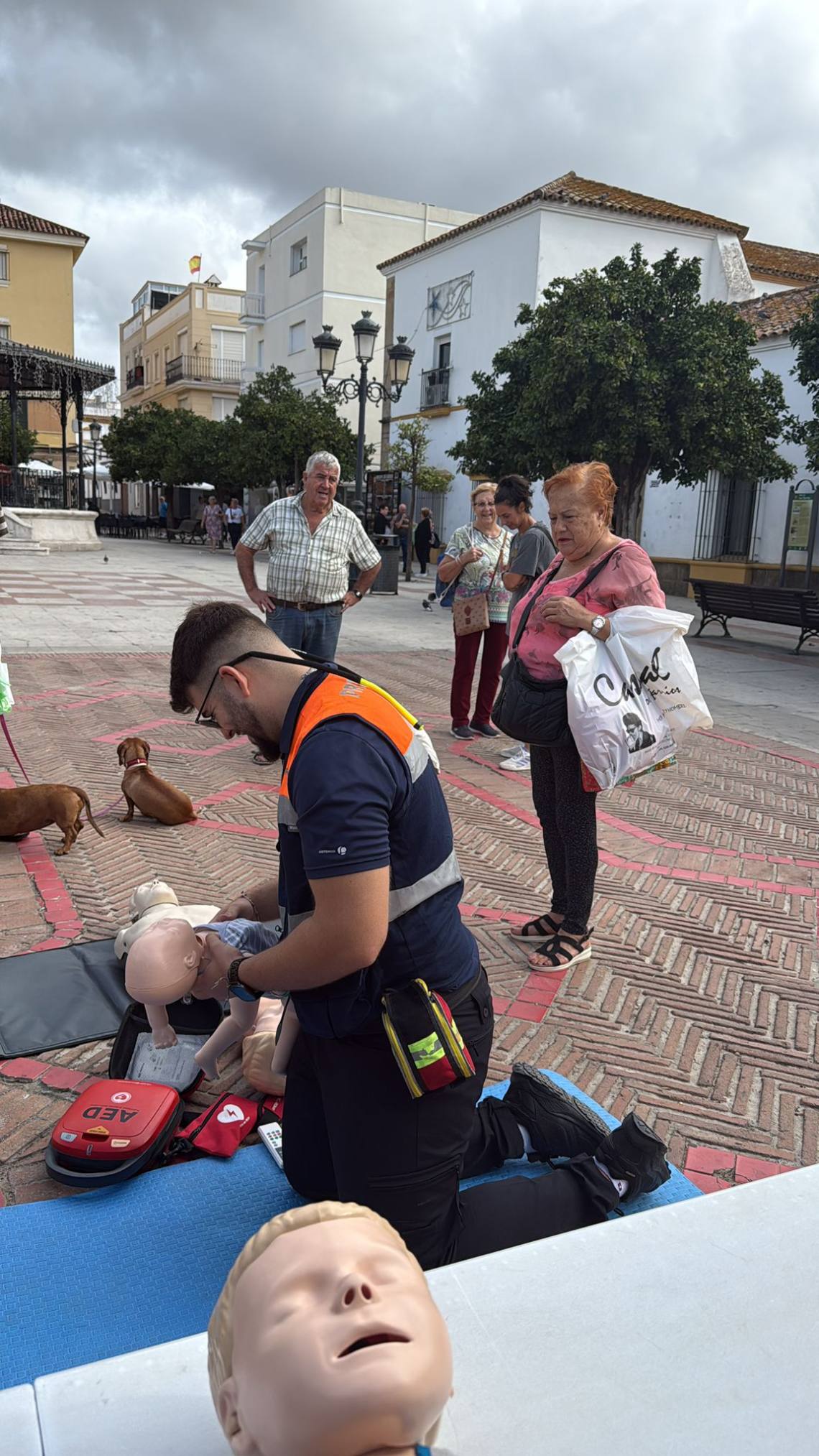 Voluntarios de Protección Civil de Los Barrios han enseñado este jueves a los vecinos de Los Barrios técnicas de reanimación cardiopulmonar (RCP) con motivo del Día Internacional de la Reanimación Cardiopulmonar.