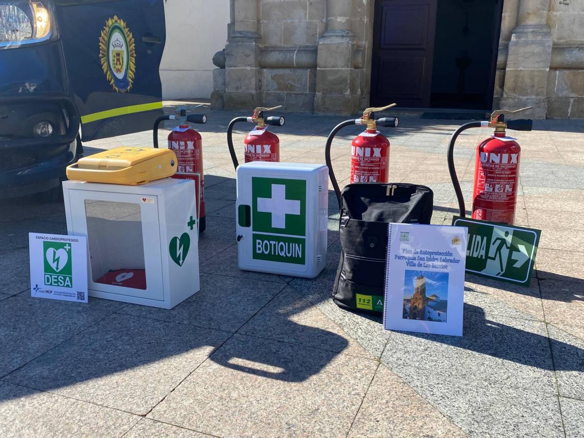 También se ha hecho entrega junto al plan botiquines de primeros auxilios, extintores donados por la empresa VINACHES SL; un desfibrilador semiautomático donado por la empresa CMT CARMIN promoviendo con ello un espacio cardioprotegido, además de la instalación de la señalética correspondiente.