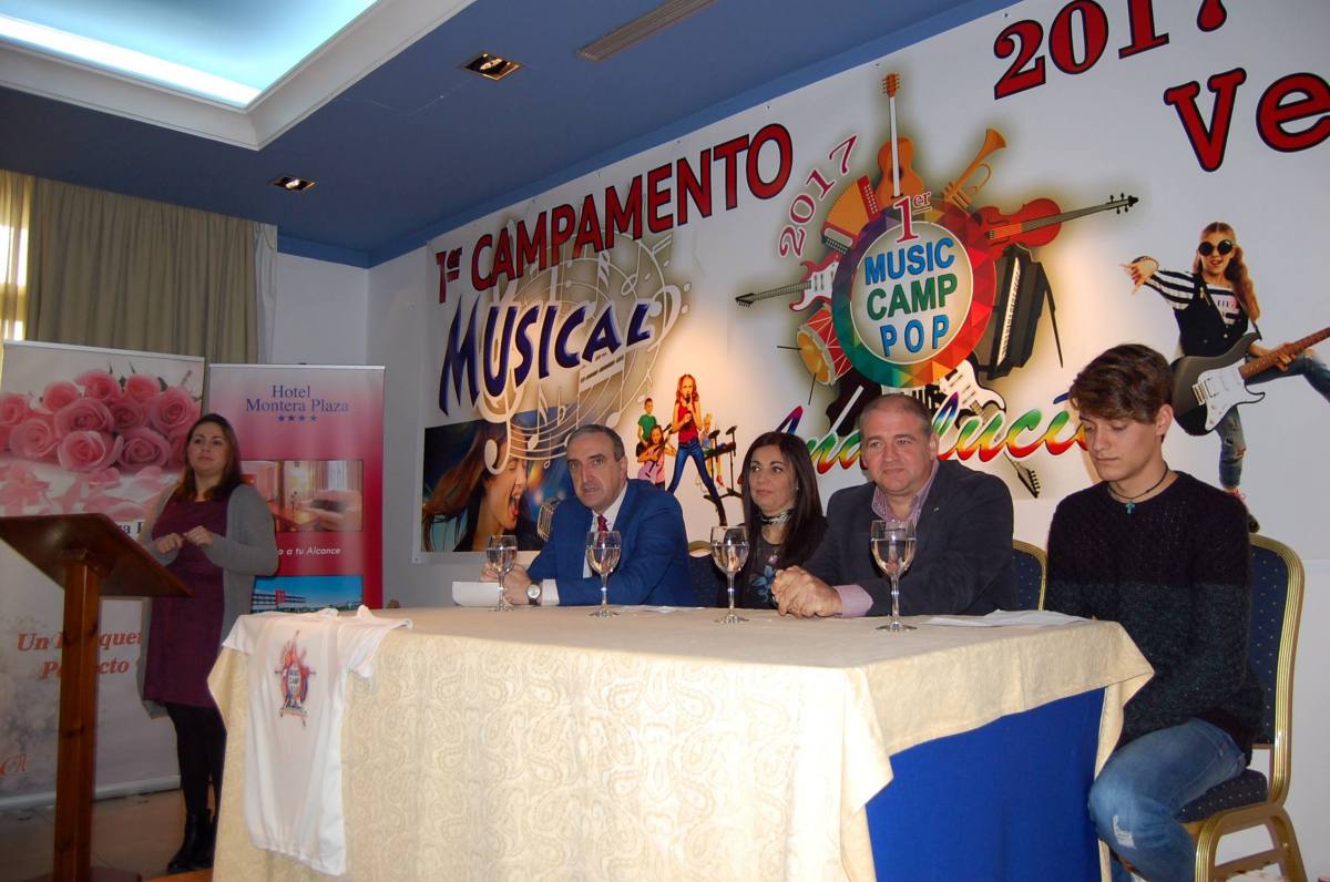 El alcalde de Los Barrios, Jorge Romero,  ha presentado este mediodía el ‘I Campamento Musical Andalucía Sur’, que se celebrará en el Hotel Montera de Los Barrios desde finales de junio hasta mediados de julio. Un acto que ha contado con la presencia de Pepi García, una de las organizadoras del campus, y del joven cantante Jonathan Almagro, participante en el programa de Canal Sur TV ‘Fenómeno Fan’.