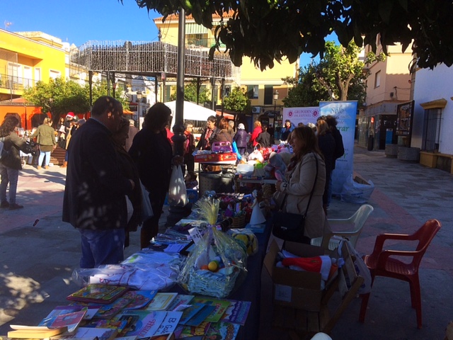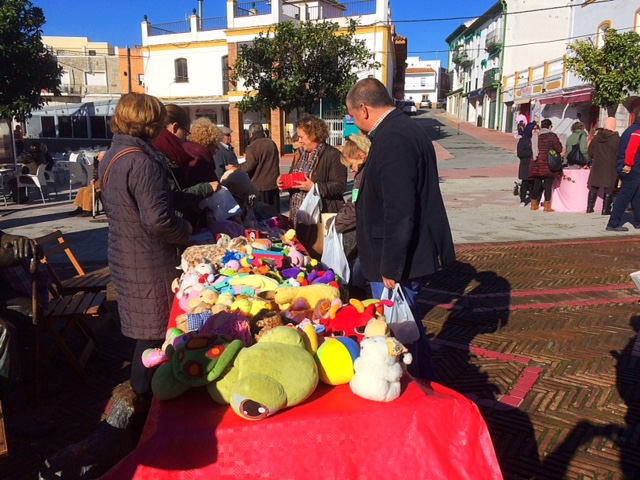 Durante toda la mañana estos colectivos han puesto a la venta sus productos como juguetes, ropa, manualidades, y dulces navideños como roscos o pestiños para recaudar fondos. El objetivo es que con su venta en este mercado solidario se pueda destinar el dinero a fines solidarios y a las actividades que organizan estos colectivos.