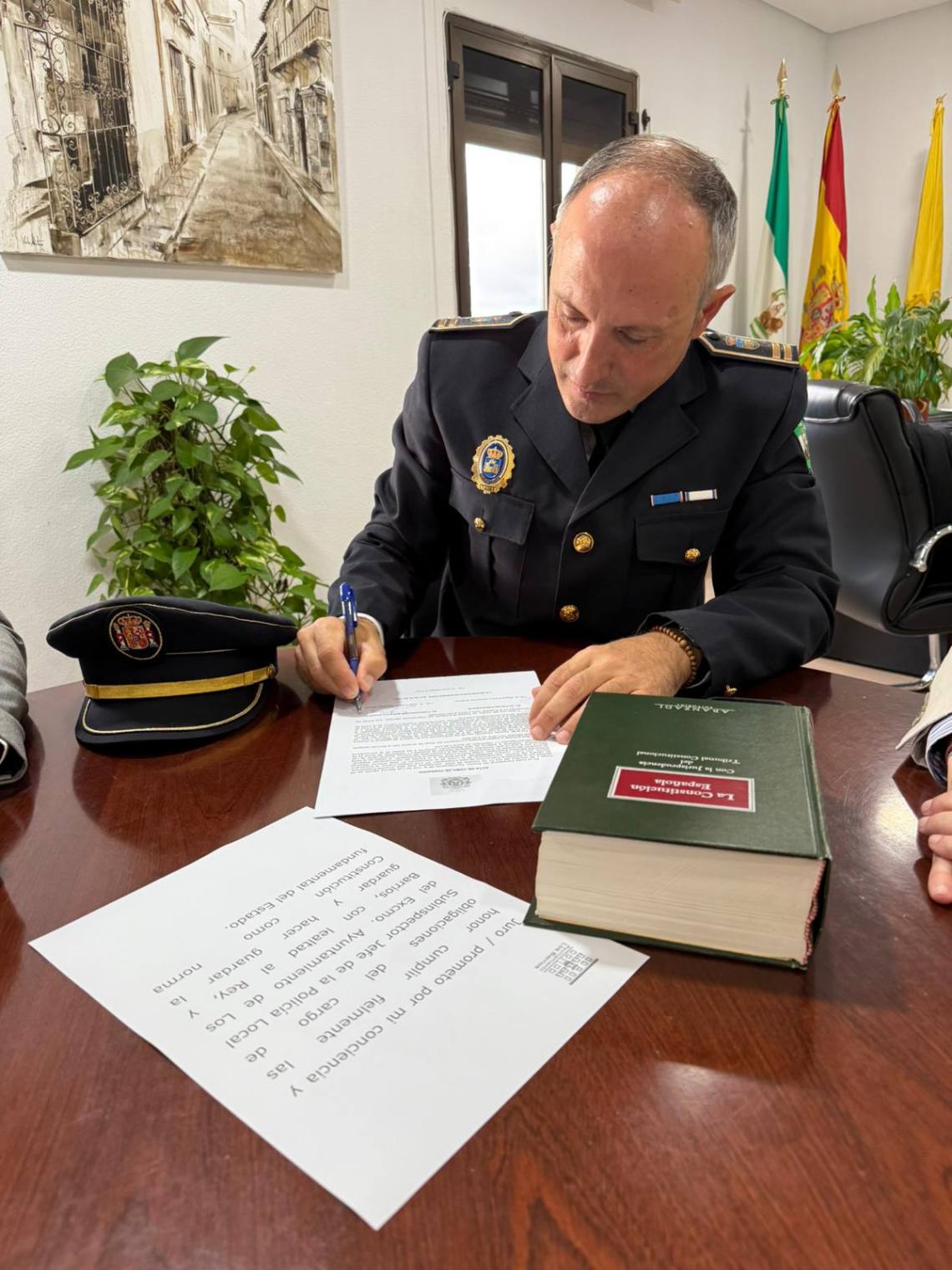 Los responsables políticos han deseado mucha suerte al nuevo responsable de la Policía Local y han mantenido, tras la toma de posesión, un primer encuentro de trabajo para coordinar la nueva etapa de José Antonio Sánchez García al frente de la policía barreña.