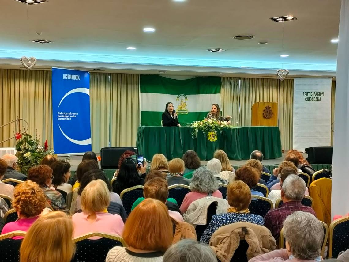 El hotel Montera de Los Barrios volvió a llenarse este viernes con la última de las conferencias de las Jornadas Culturales Andaluzas 2023, que tuvo como protagonista a la periodista Toñi Moreno y que recorrió durante una hora y media su trayectoria profesional y personal de aquella chica que con 14 años empezó a trabajar en la televisión de Sanlúcar de Barrameda.