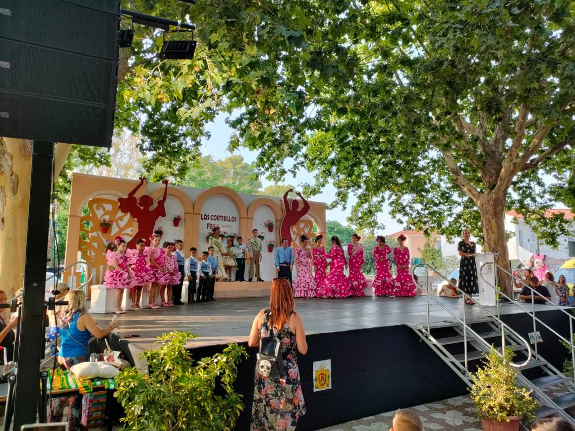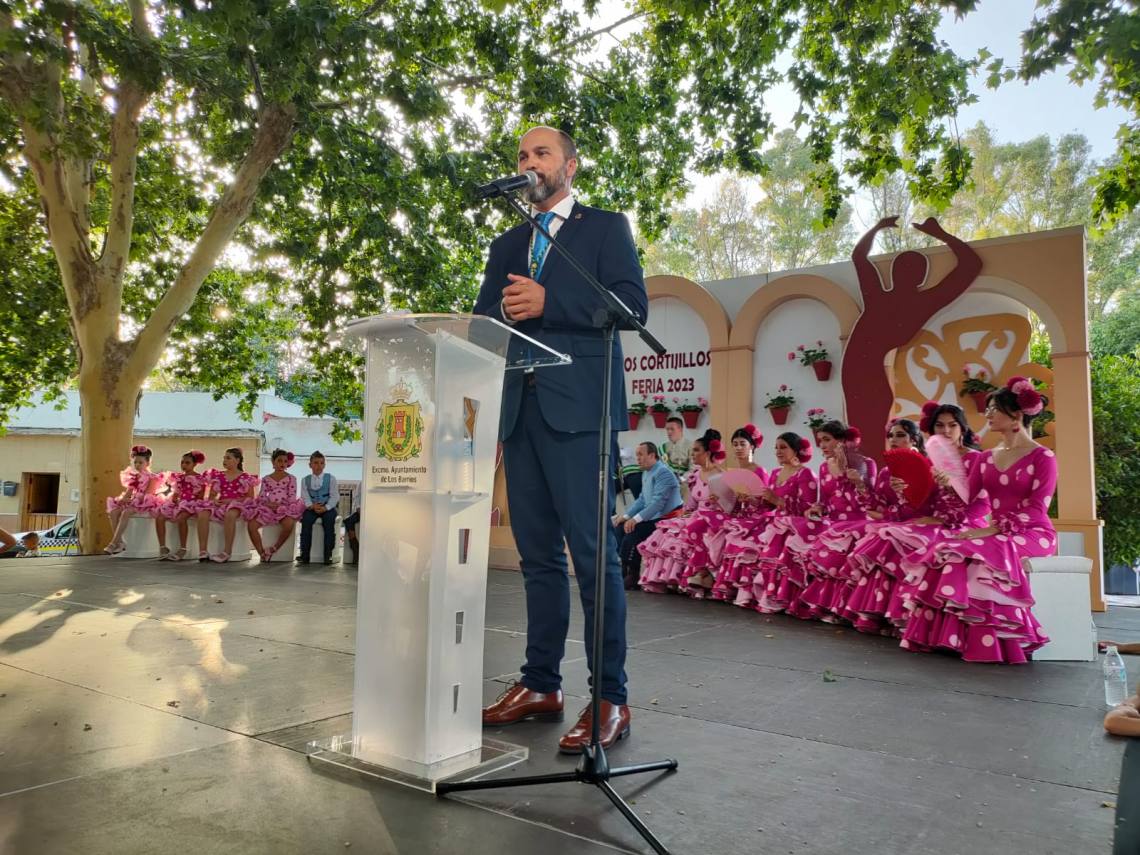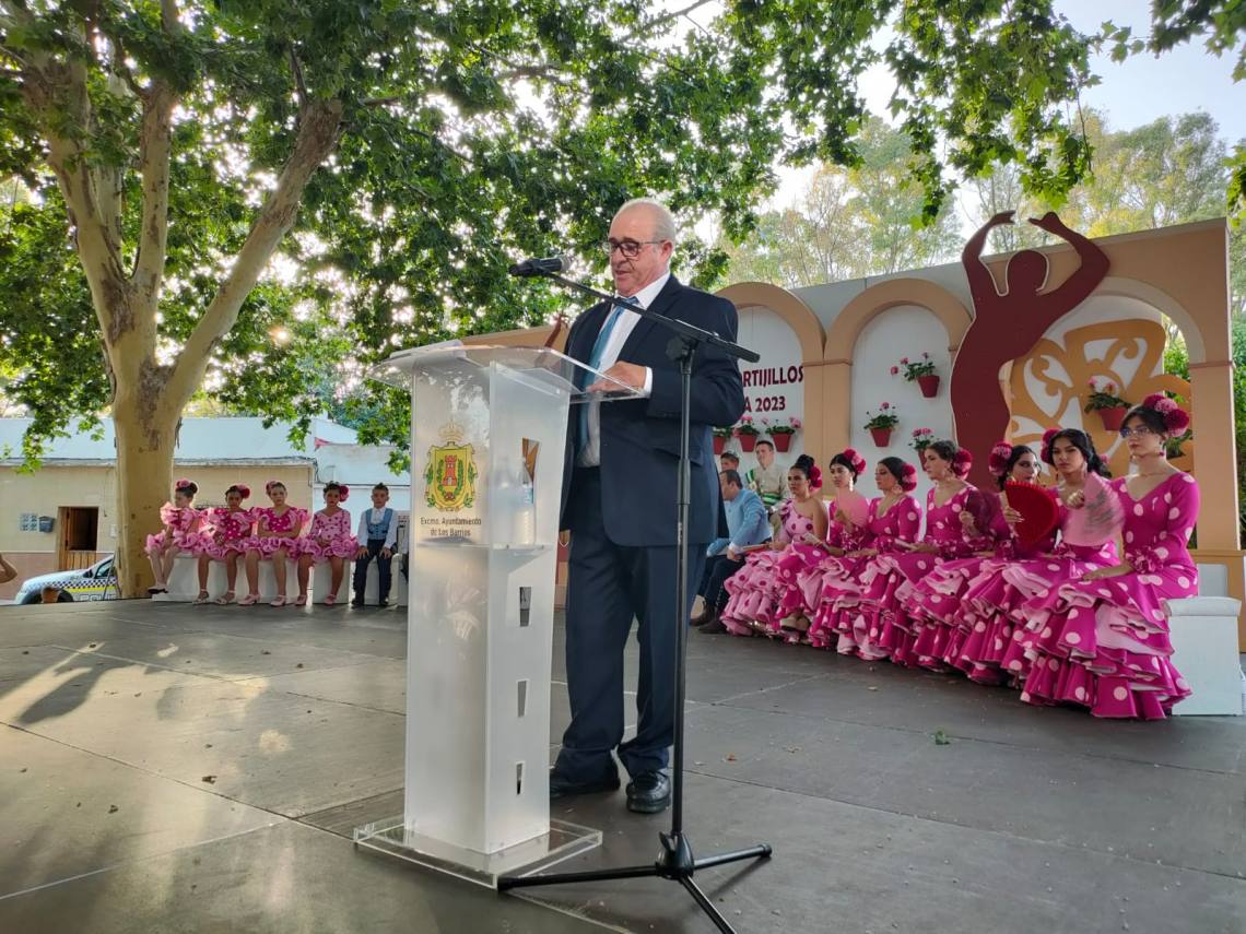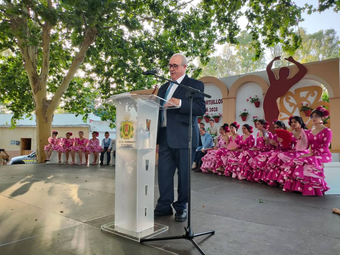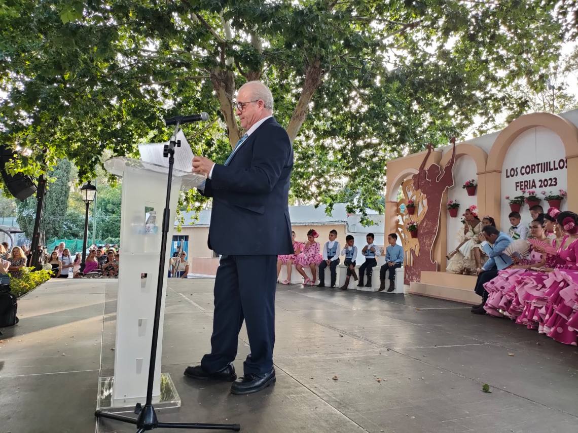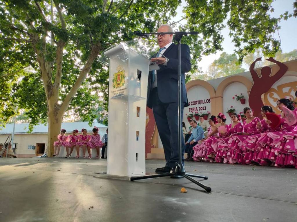 Luego fue el turno del pregón de la feria que corrió a cargo de Luis María García Gómez, vecino de Los Cortijillos muy querido en la barriada y que ofreció un emotivo pregón basado en sus recuerdos en esta barriada, de sus comienzos en el mundo de la hostelería o de como cuidaba con mimo el césped del campo de fútbol de Los Cortijillos.
