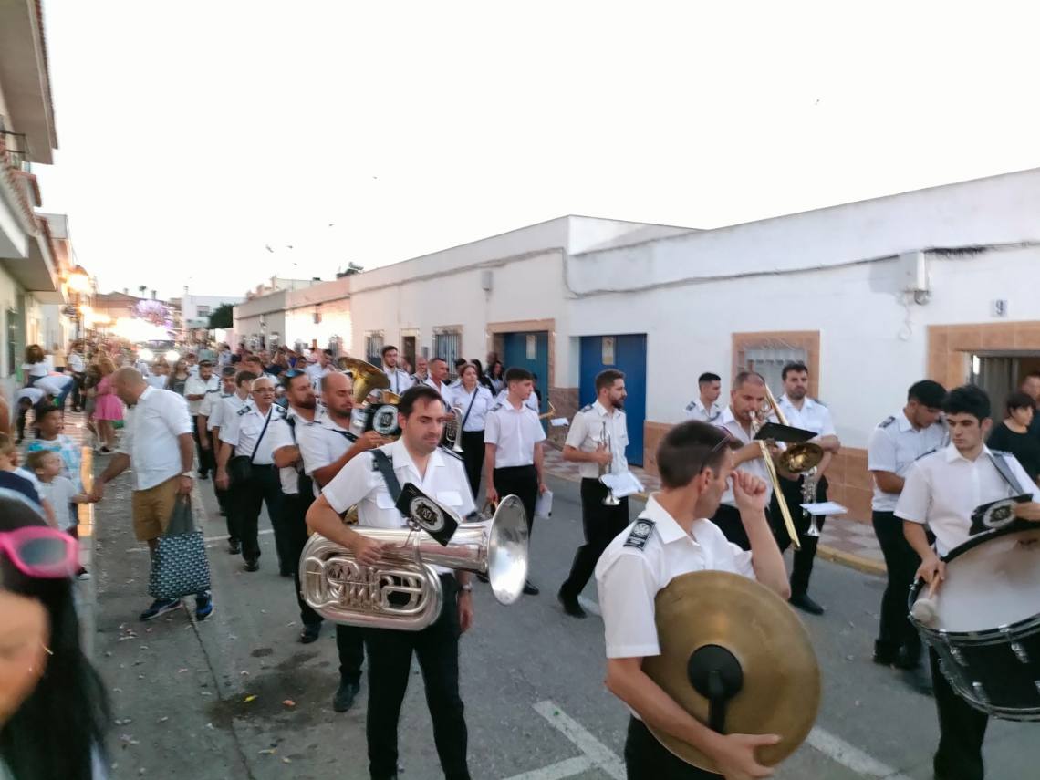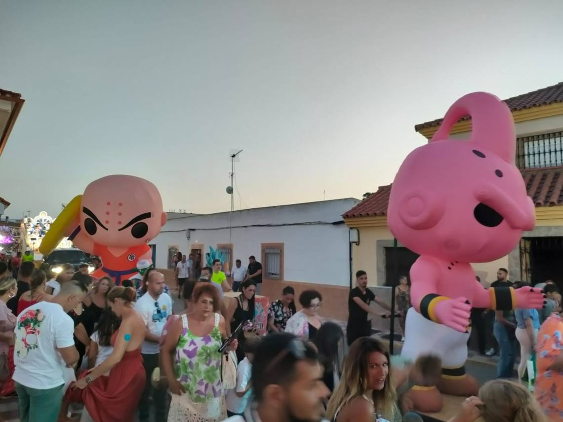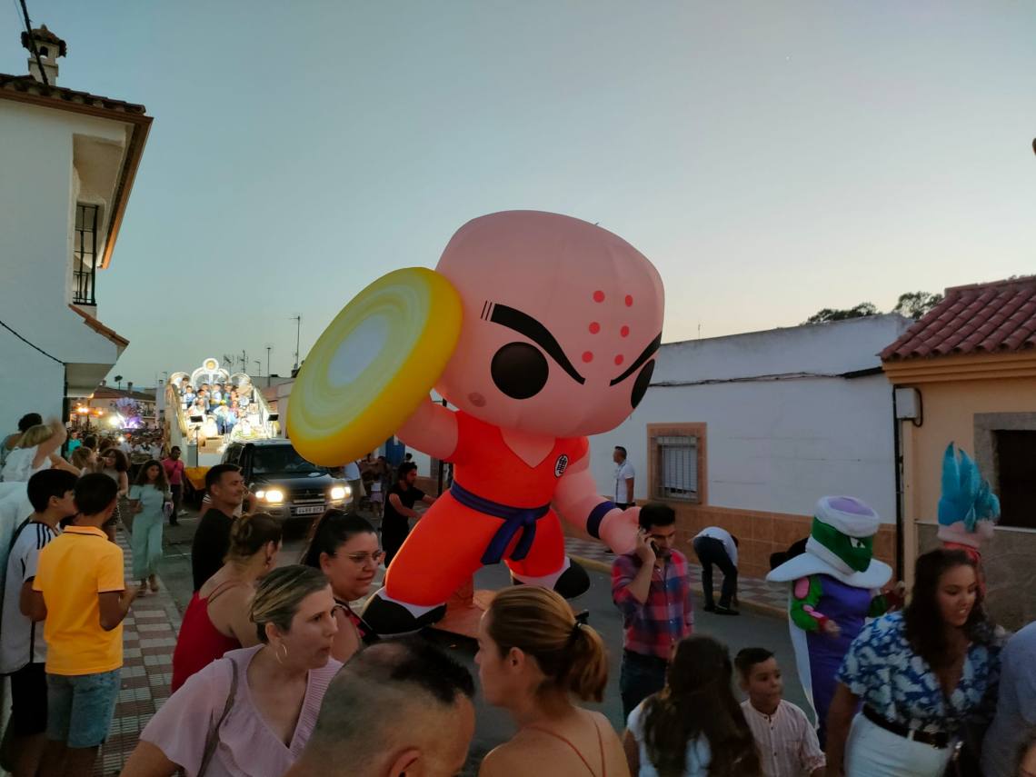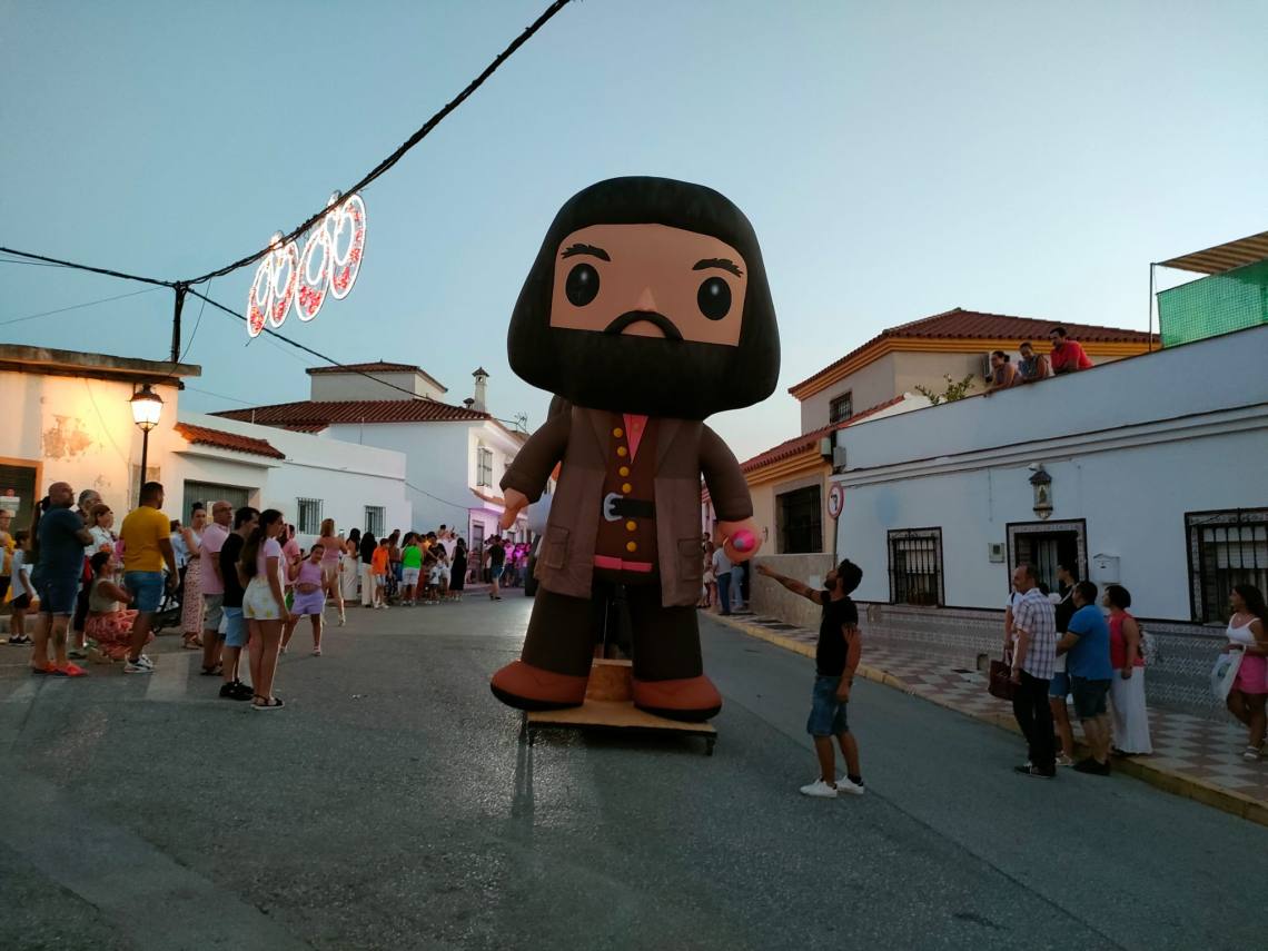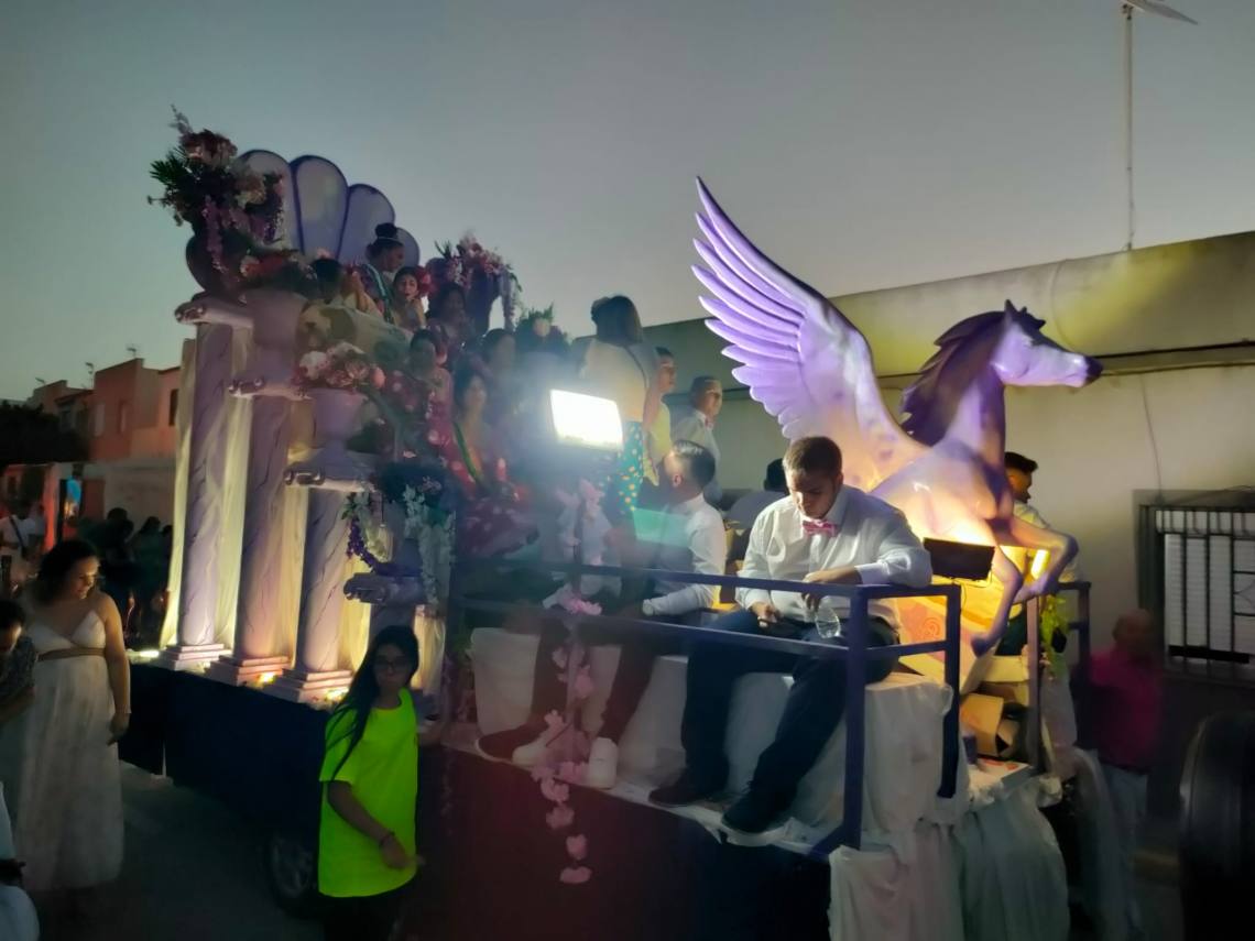 Tras la coronación se celebró una divertida cabalgata con tres carrozas, animaciones de hinchables gigantes, muchos caramelos y la banda de música y mucho ambiente de vecinos y vecinas por las calles de la barriada.