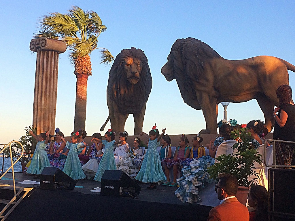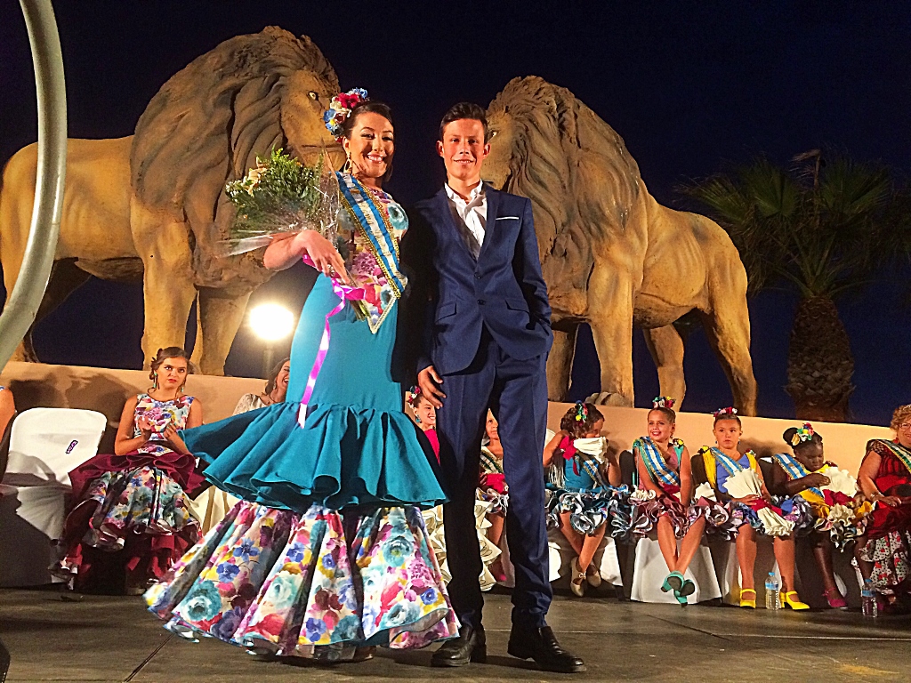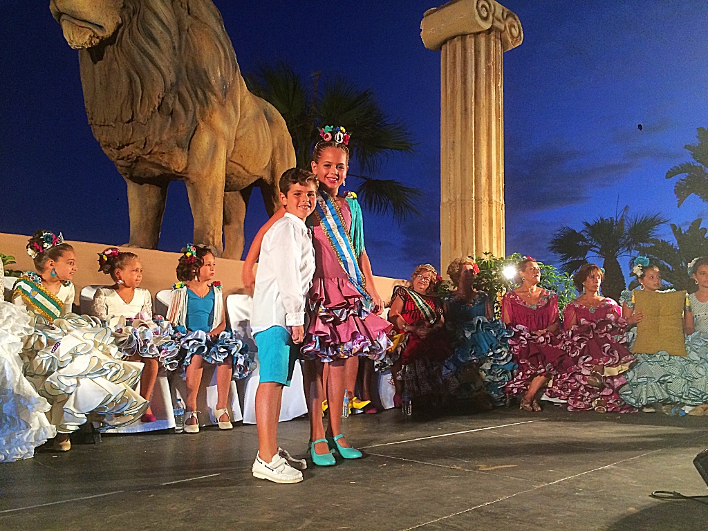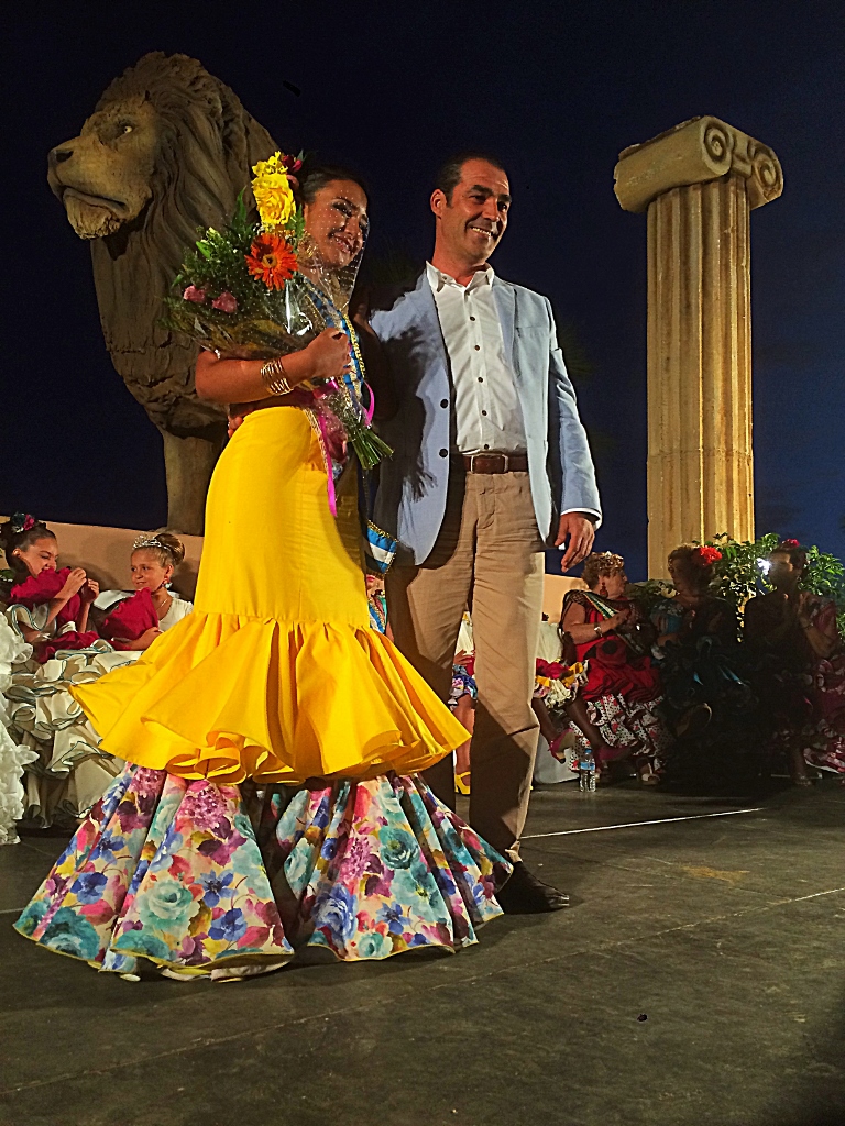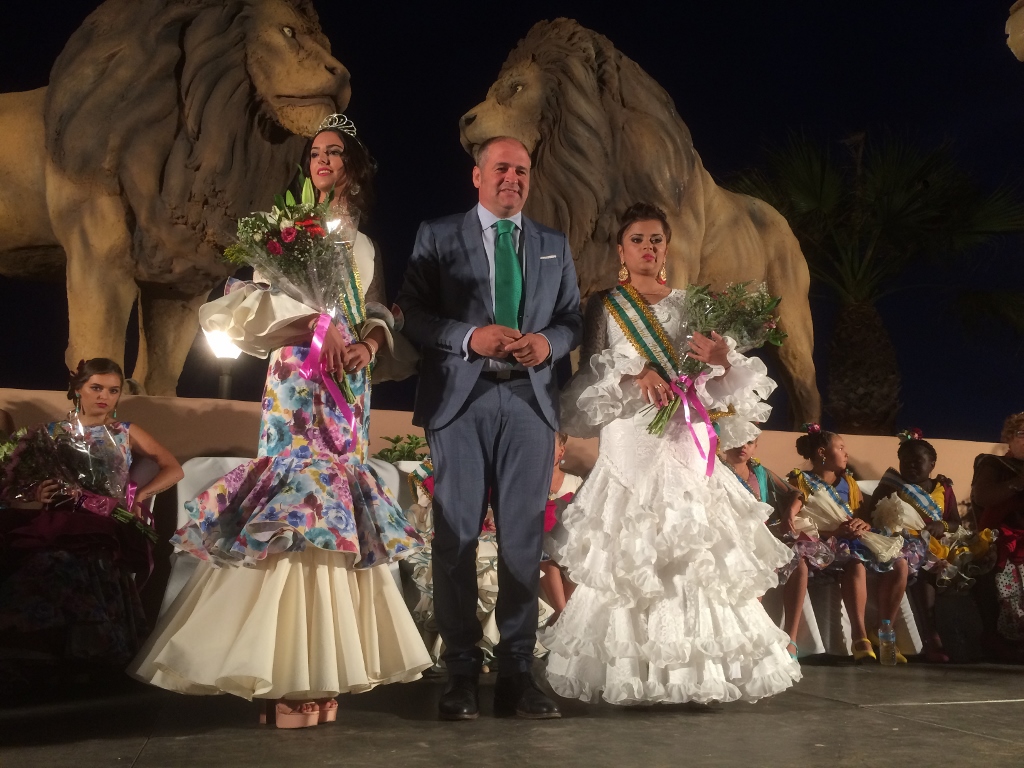 La Feria de Palmones ha comenzado con un bonito acto de coronación en el paseo marítimo y con las marismas del río de fondo en un escenario que recreó el escudo de Andalucía con dos grandes leones y las dos columnas de Hércules, una obra del escultor Bernardo Martínez.