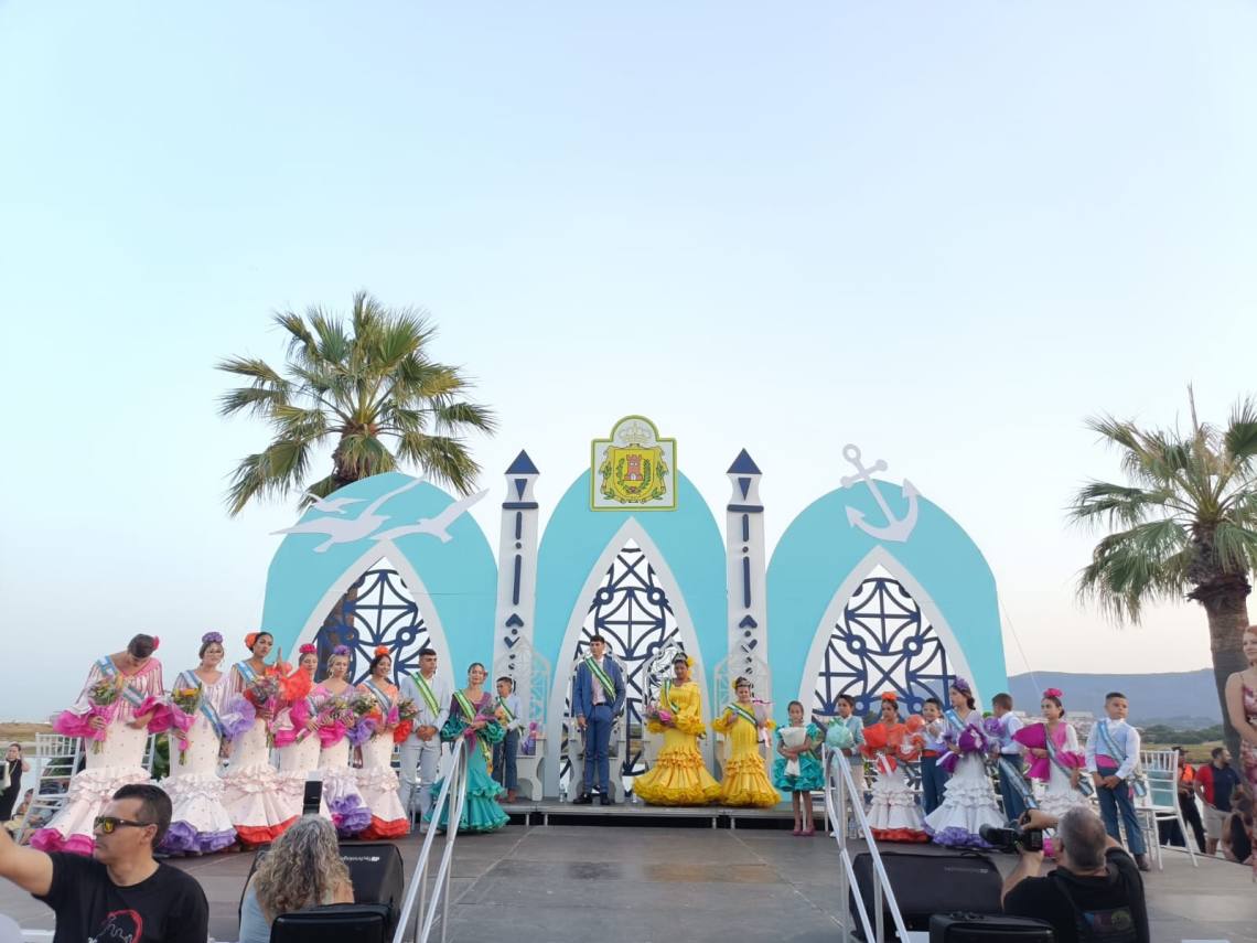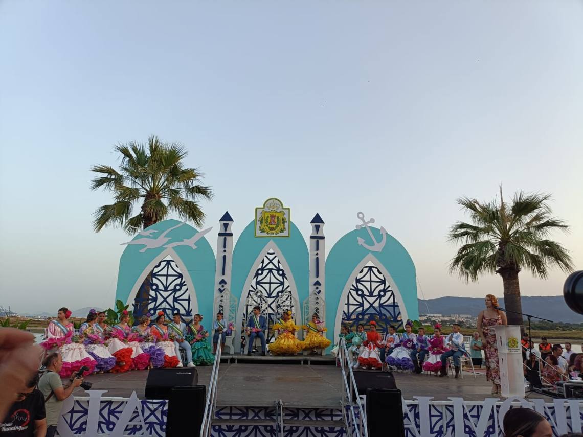 La Feria de Palmones ha comenzado este jueves con el tradicional acto de coronación en el paseo marítimo con el fondo espectacular de las marismas del río Palmones.