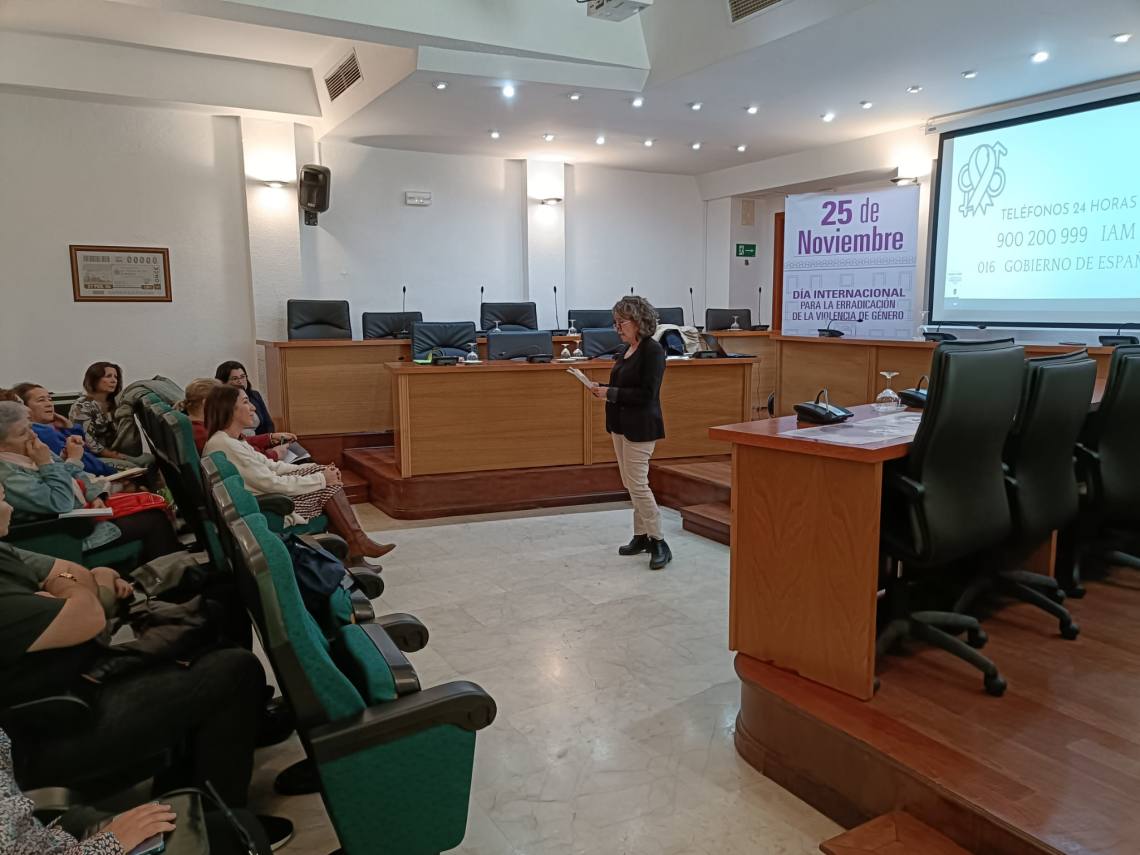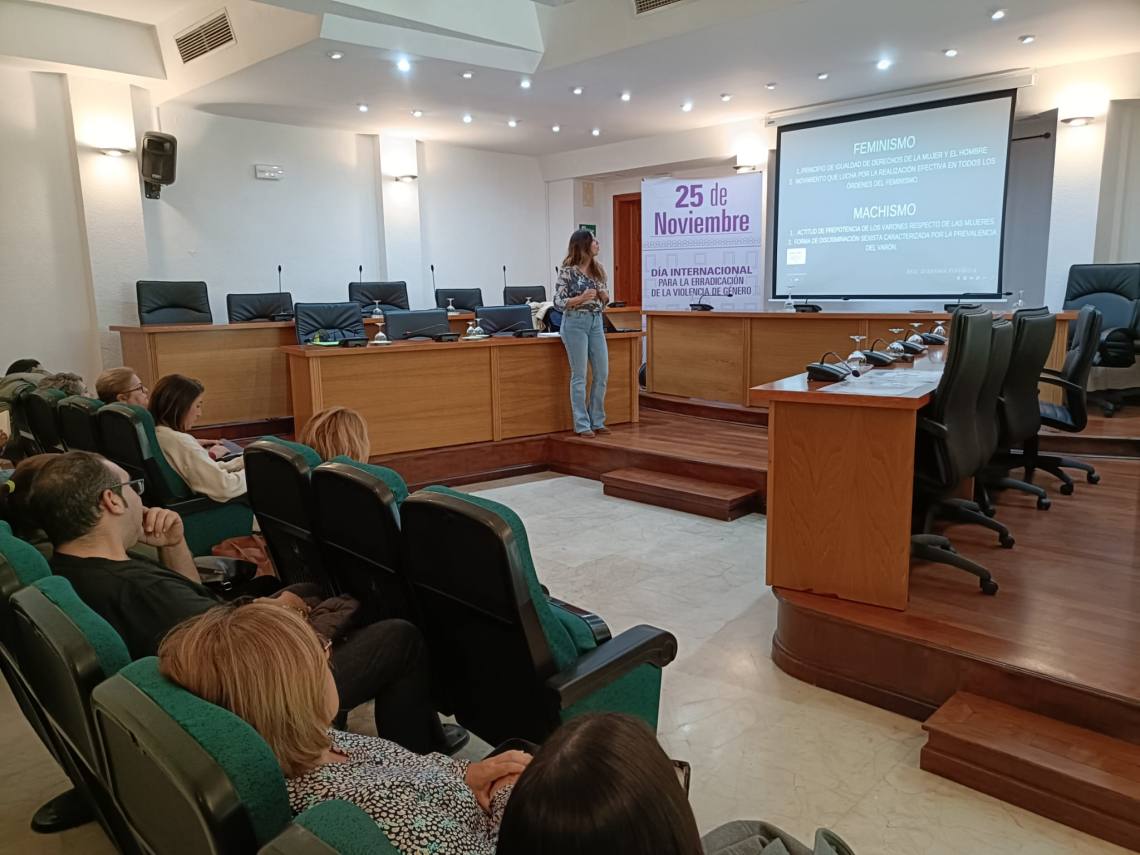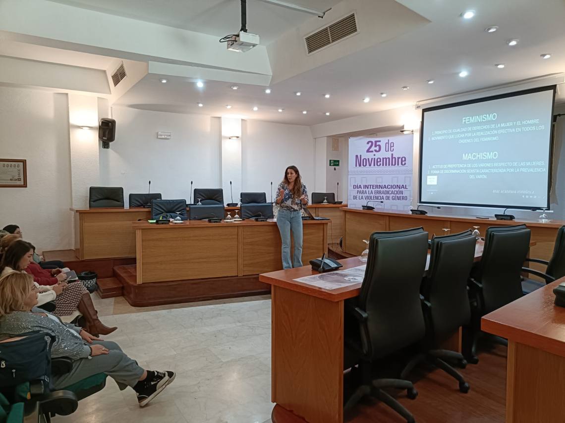 El salón de plenos del Ayuntamiento ha acogido esta mañana el taller informativo ‘La violencia de género y los recursos de la administración local’, impartido por personal técnico del Centro Municipal de Información a la Mujer.