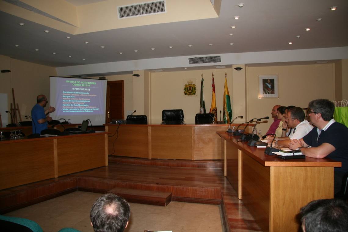 El concejal de Medio Ambiente de Los Barrios, Miguel Alconchel, y el de Educación, Manuel Molina, han recibido en el Salón de Plenos a una comisión de técnicos gibraltareños de los ministerios de Educación y Medio Ambiente, donde se ha realizado una exposición sobre las diferentes acciones municipales en Medio Ambiente.