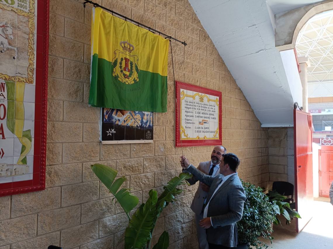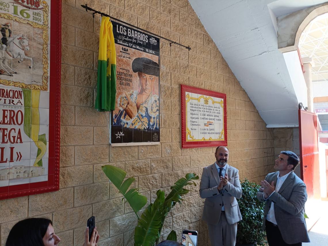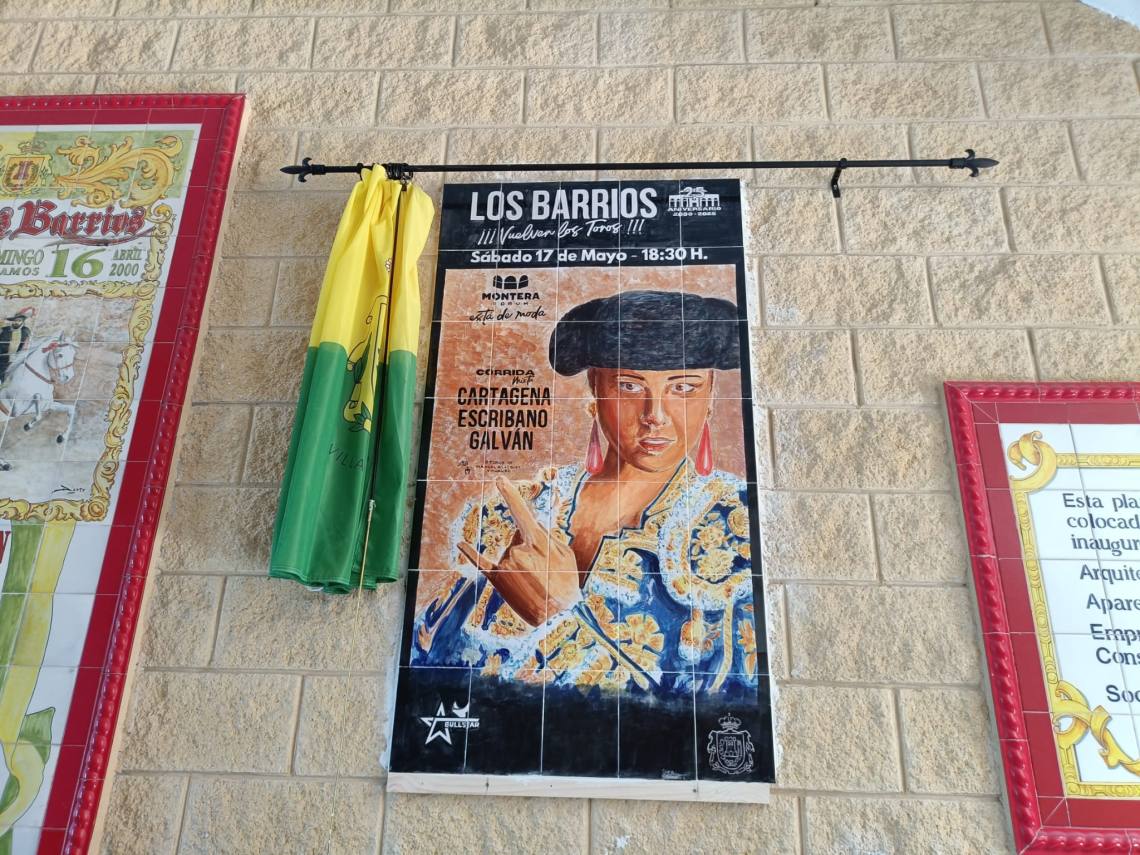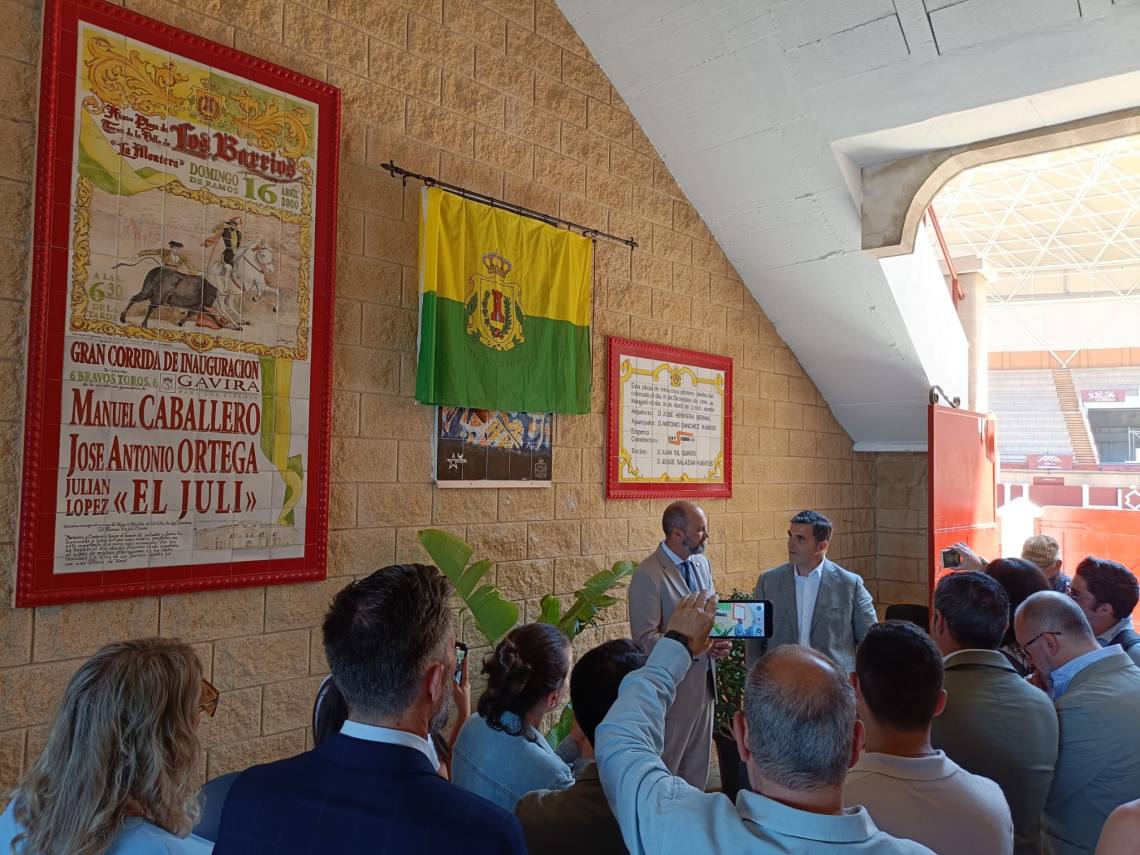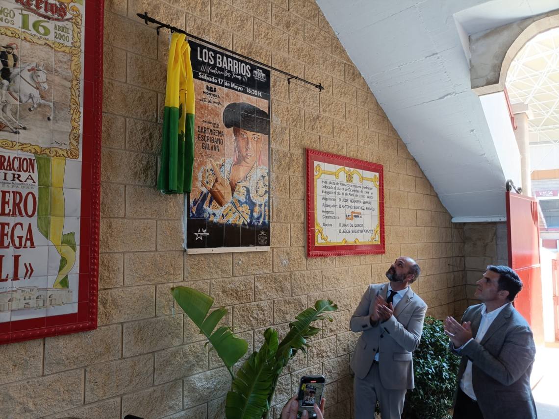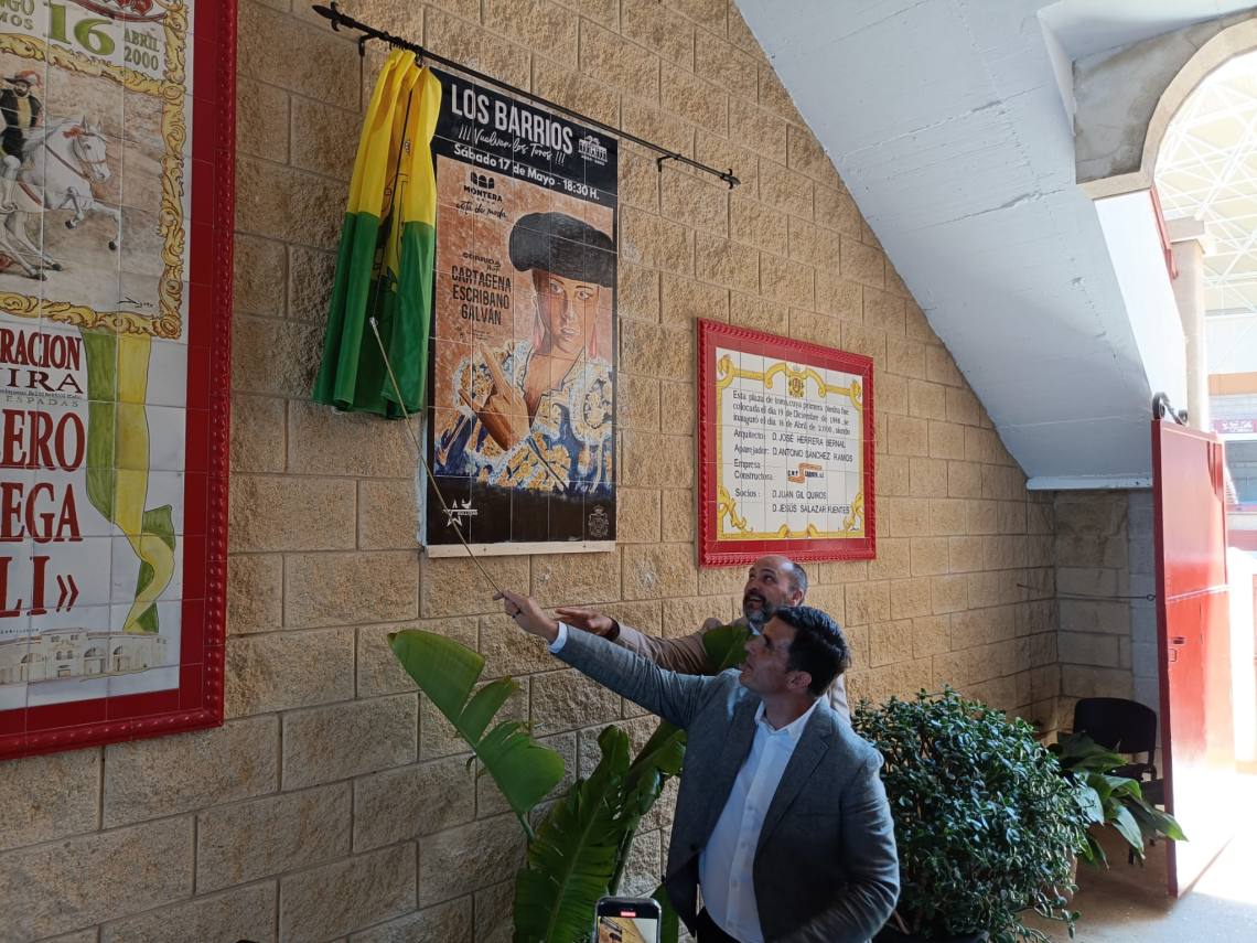 Tras la bendición, se ha procedido al descubrimiento de un azulejo del cartel taurino de mañana sábado, que viene a conmemorar el 25 aniversario del coso barreño.
