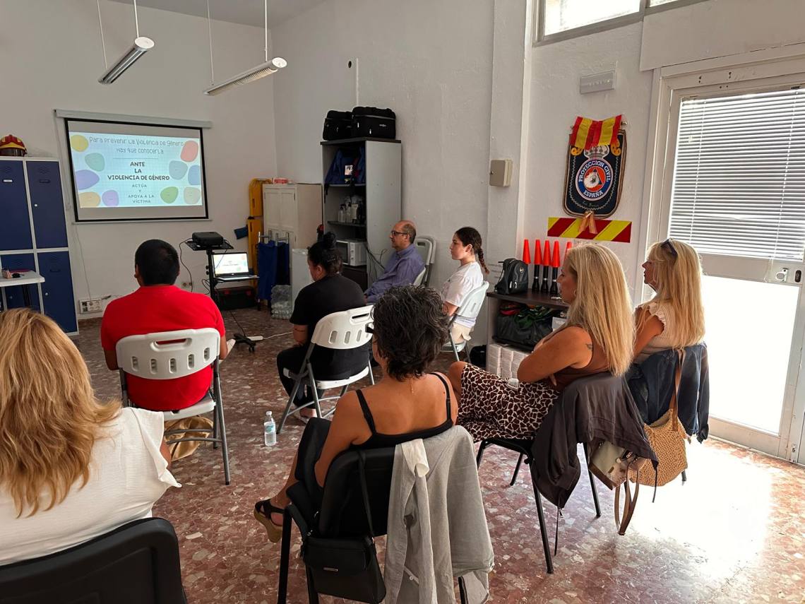 Voluntarios de la Agrupación Local de Protección Civil, que dirige la concejala Geli Ferral, han participado en el curso en materia de prevención de violencia de género y sexual y atención a las víctimas, que ha impartido la voluntaria y asesora jurídica de Protección Civil, Ángeles García Campillo.